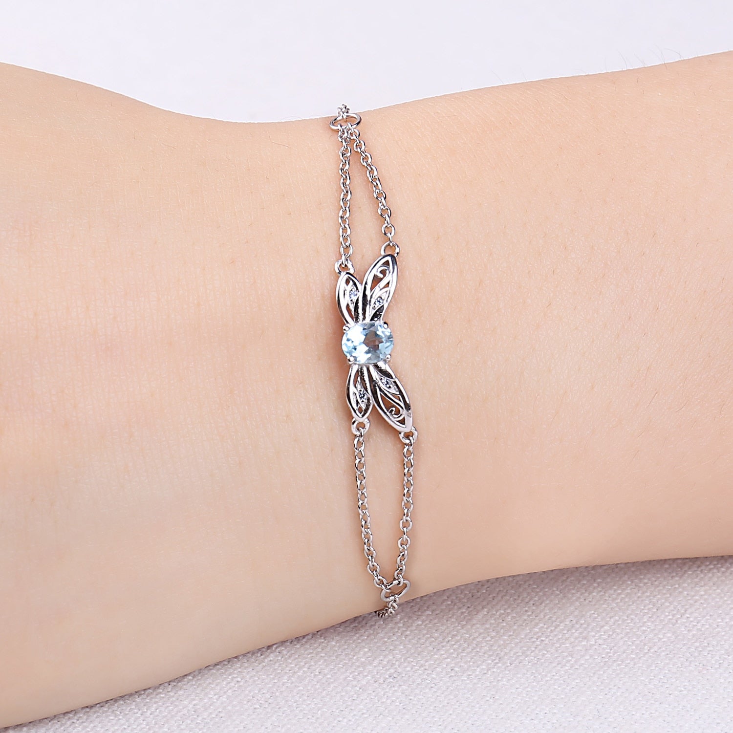 - This dragonfly charm bracelet is crafted from sterling silver and embellished with a shimmering sky blue topaz.